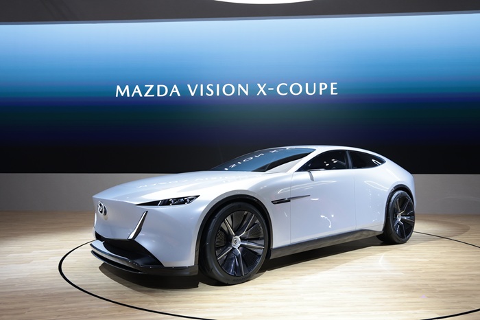 MAZDA VISION X-COUPE ロータリーエンジンを復活させ、プラグインハイブリッド(PHEV)最高出力510馬力、カーボンニュートラル燃料の使用やCO2回収技術も搭載。