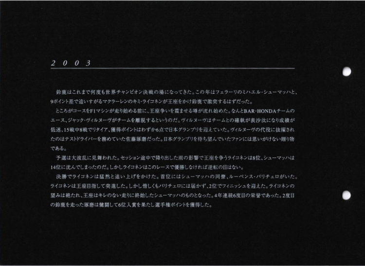 その2006年の日本グランプリのパドッククラブで配布された写真集を、