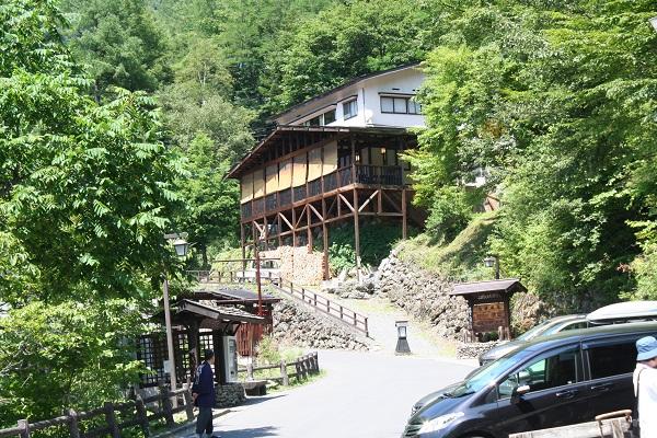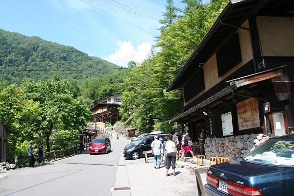 と思いつつ走ると突然温泉街が出現。 駐車場に車を止め、