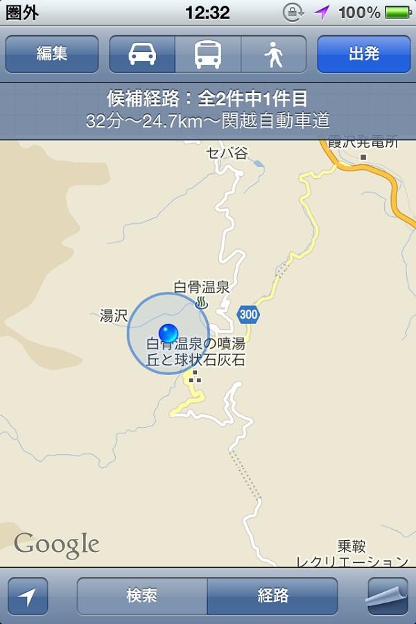 iPhoneの地図を見てみたらちゃんと白骨温泉でした。もちろん「圏外」?