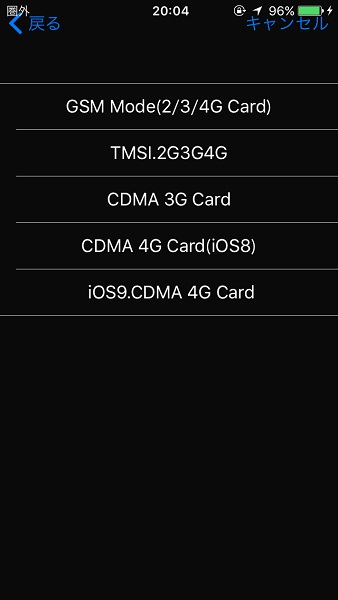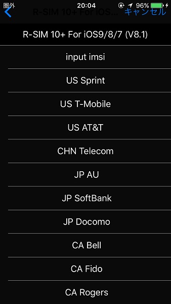 少し待つと画像の様な画面が出てくるのど今回はSoftBank版iPhone5Sなので「JP SoftBank」をタップする。