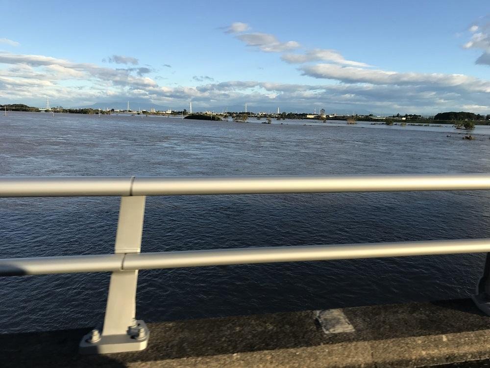 避難所を出て翌朝本当はいけないのでしょうが荒川の水位を確かめに行きました。川幅日本一と言われている場所は文字通り川幅いっぱいまで水が広がり、そこを通る道路はゴミなどが堆積していて昨夜は冠水したような跡が随所に残っています。堤防を超えるギリギリの状態で今普通に生活できているのがいかに幸せかと思います。今回は紙一重の状態でした。ここまで水位が上がったのは生まれて初めてかも知れない。ニュースにはならないとは思いますがここまで水位が上がると水没している民家もあるのでとても大変だと思います。